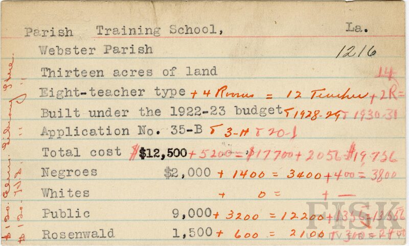 - Rosenwald Fund Card File, The Julius Rosenwald Fund Archives, 1918-1948, John Hope and Aurelia E. Franklin Library