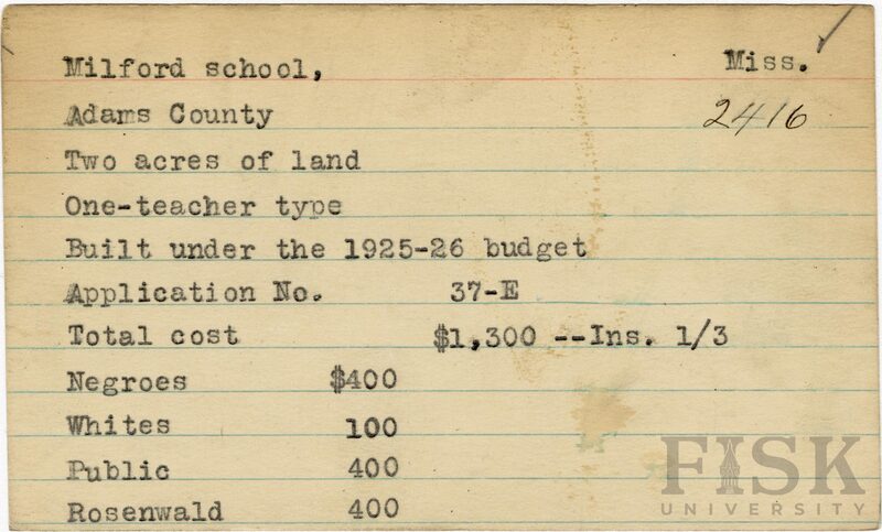 - Rosenwald Fund Card File, The Julius Rosenwald Fund Archives, 1918-1948, John Hope and Aurelia E. Franklin Library