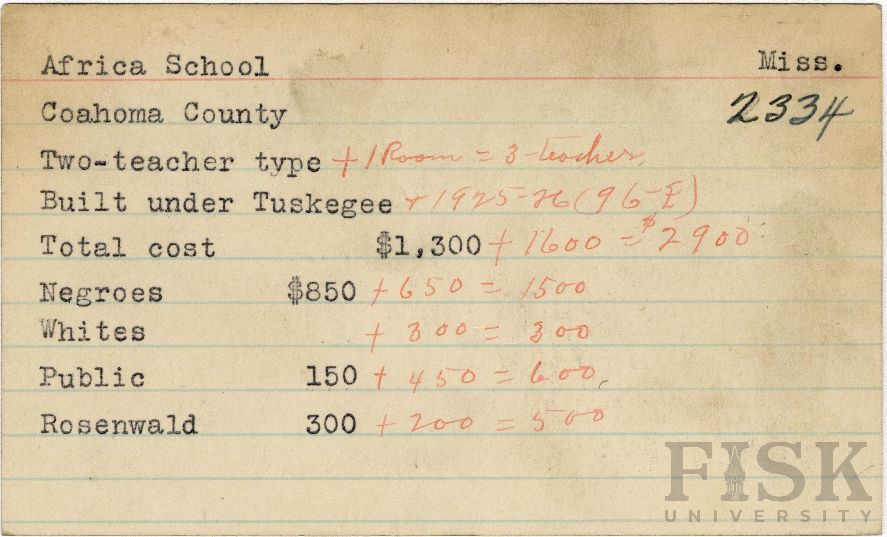 - Rosenwald Fund Card File, The Julius Rosenwald Fund Archives, 1918-1948, John Hope and Aurelia E. Franklin Library