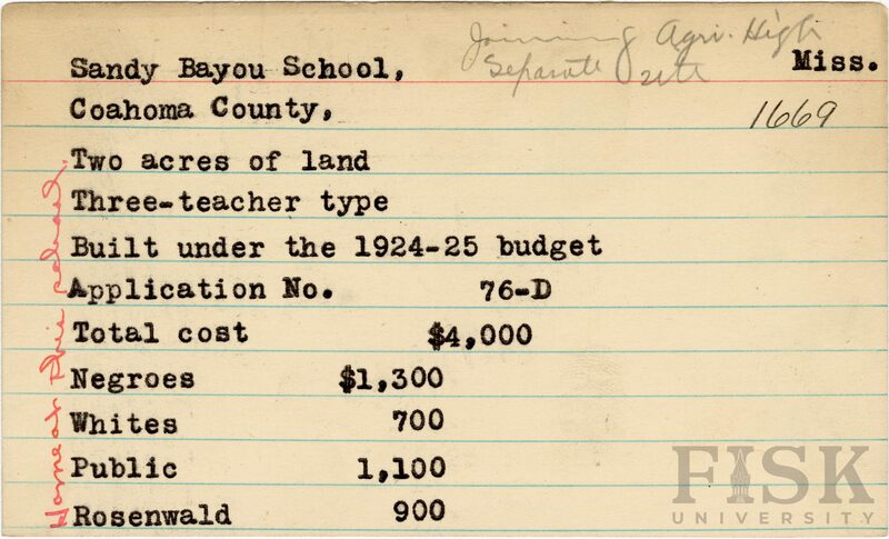- Rosenwald Fund Card File, The Julius Rosenwald Fund Archives, 1918-1948, John Hope and Aurelia E. Franklin Library