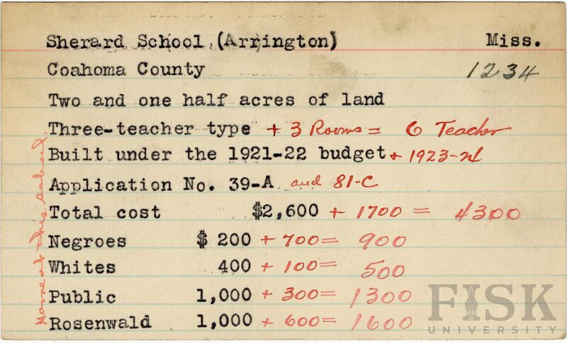 - Rosenwald Fund Card File, The Julius Rosenwald Fund Archives, 1918-1948, John Hope and Aurelia E. Franklin Library