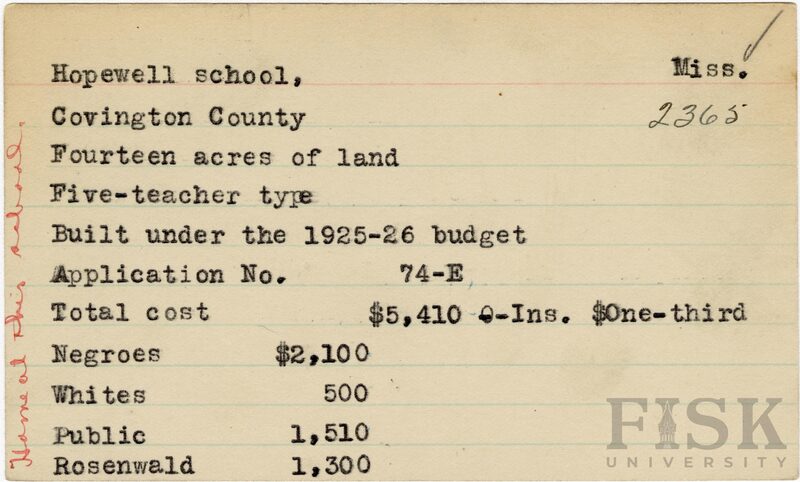 - Rosenwald Fund Card File, The Julius Rosenwald Fund Archives, 1918-1948, John Hope and Aurelia E. Franklin Library