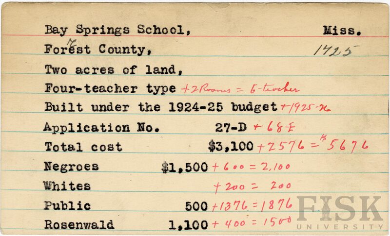 - Rosenwald Fund Card File, The Julius Rosenwald Fund Archives, 1918-1948, John Hope and Aurelia E. Franklin Library