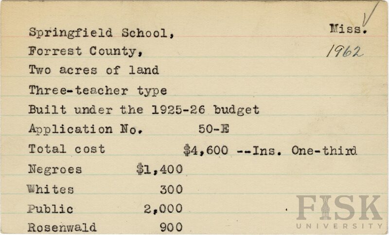 - Julius Rosenwald Fund, Julius Rosenwald Fund--Buildings, African American schools--History--20th century, African American schools -- Springfield School