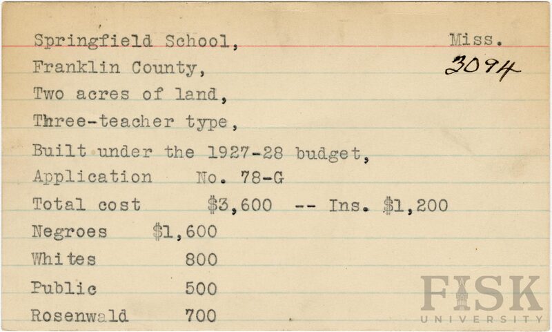 - Julius Rosenwald Fund, Julius Rosenwald Fund--Buildings, African American schools--History--20th century, African American schools -- Springfield School