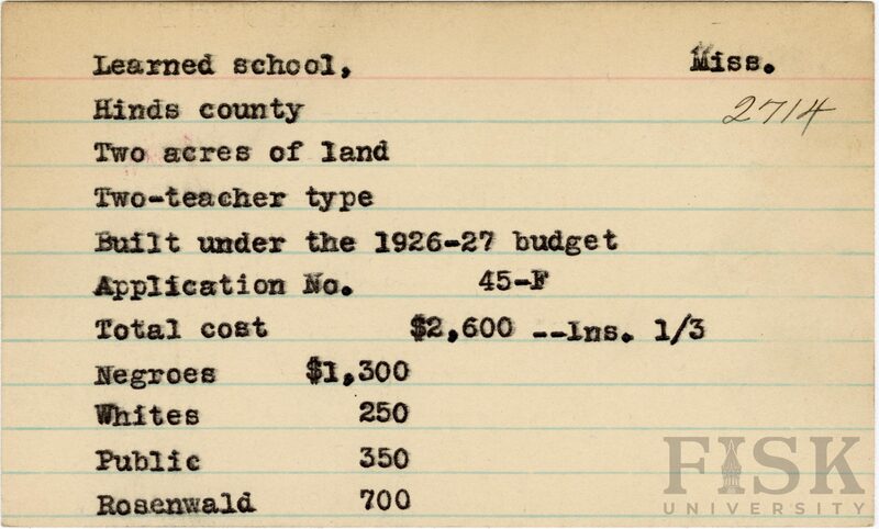 - Rosenwald Fund Card File, The Julius Rosenwald Fund Archives, 1918-1948, John Hope and Aurelia E. Franklin Library