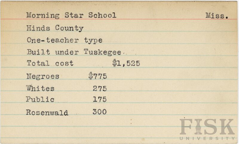 - School card from Rosenwald Fund for Morning Star School in Hinds County, Mississippi