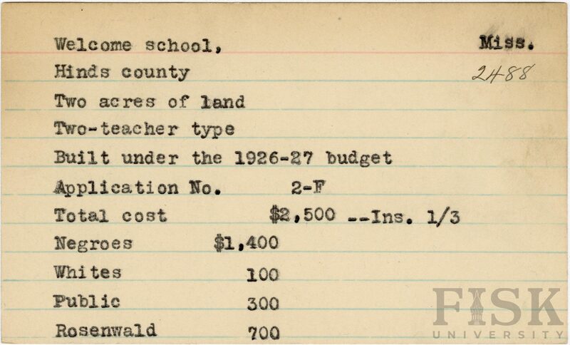 - Julius Rosenwald Fund, Julius Rosenwald Fund--Buildings, African American schools--History--20th century, African American schools -- Welcome School