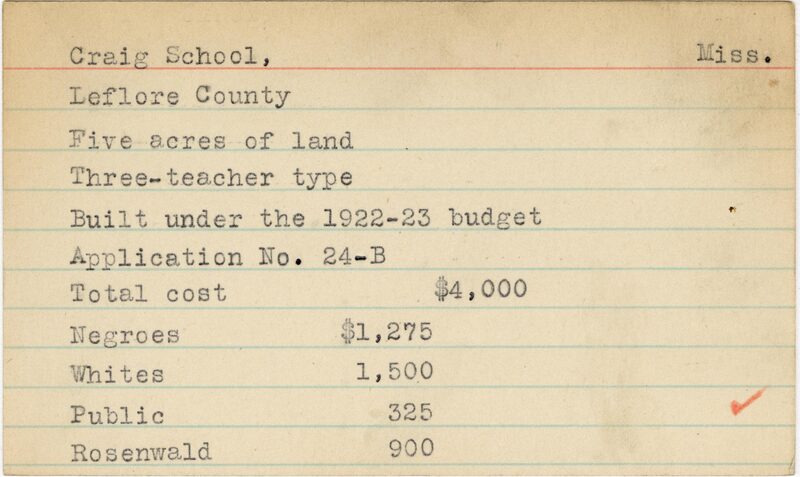 - School card from Rosenwald Fund for Craig School in Leflore County, Mississippi