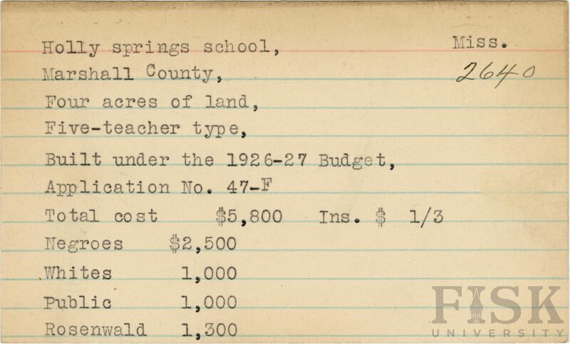 - Julius Rosenwald Fund, Julius Rosenwald Fund--Buildings, African American schools--History--20th century, African American schools -- Holly Springs School