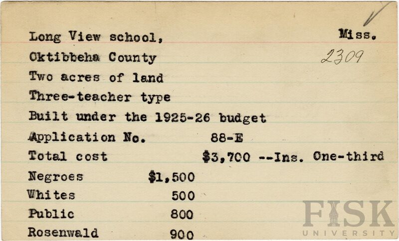 - Rosenwald Fund Card File, The Julius Rosenwald Fund Archives, 1918-1948, John Hope and Aurelia E. Franklin Library