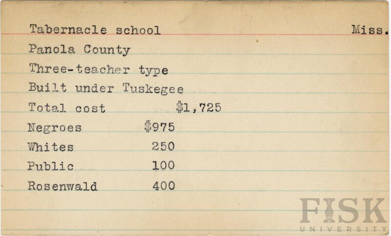- School card from Rosenwald Fund for Tabernacle School in Panola County, Mississippi