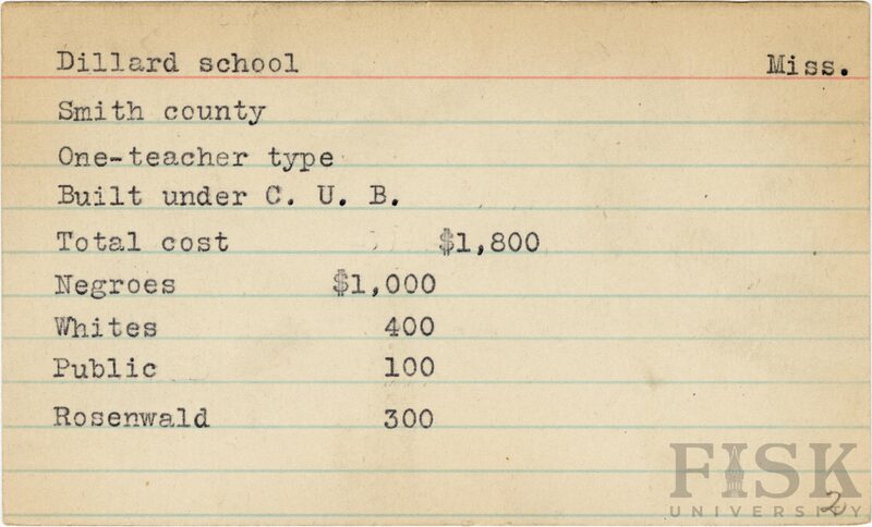 - School card from Rosenwald Fund for Dillard School in Smith County, Mississippi