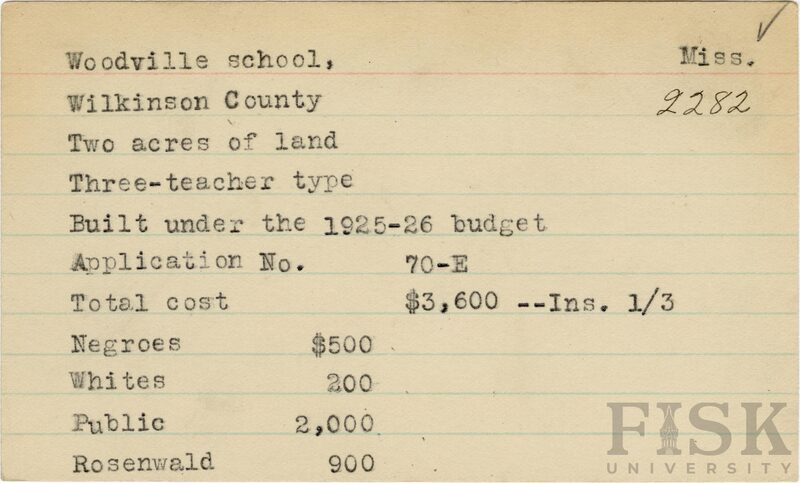 - Julius Rosenwald Fund, Julius Rosenwald Fund--Buildings, African American schools--History--20th century, African American schools -- Woodville School