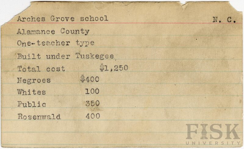 - Julius Rosenwald Fund--Buildings, African American schools--History--20th century, African American schools--Arches Grove School
