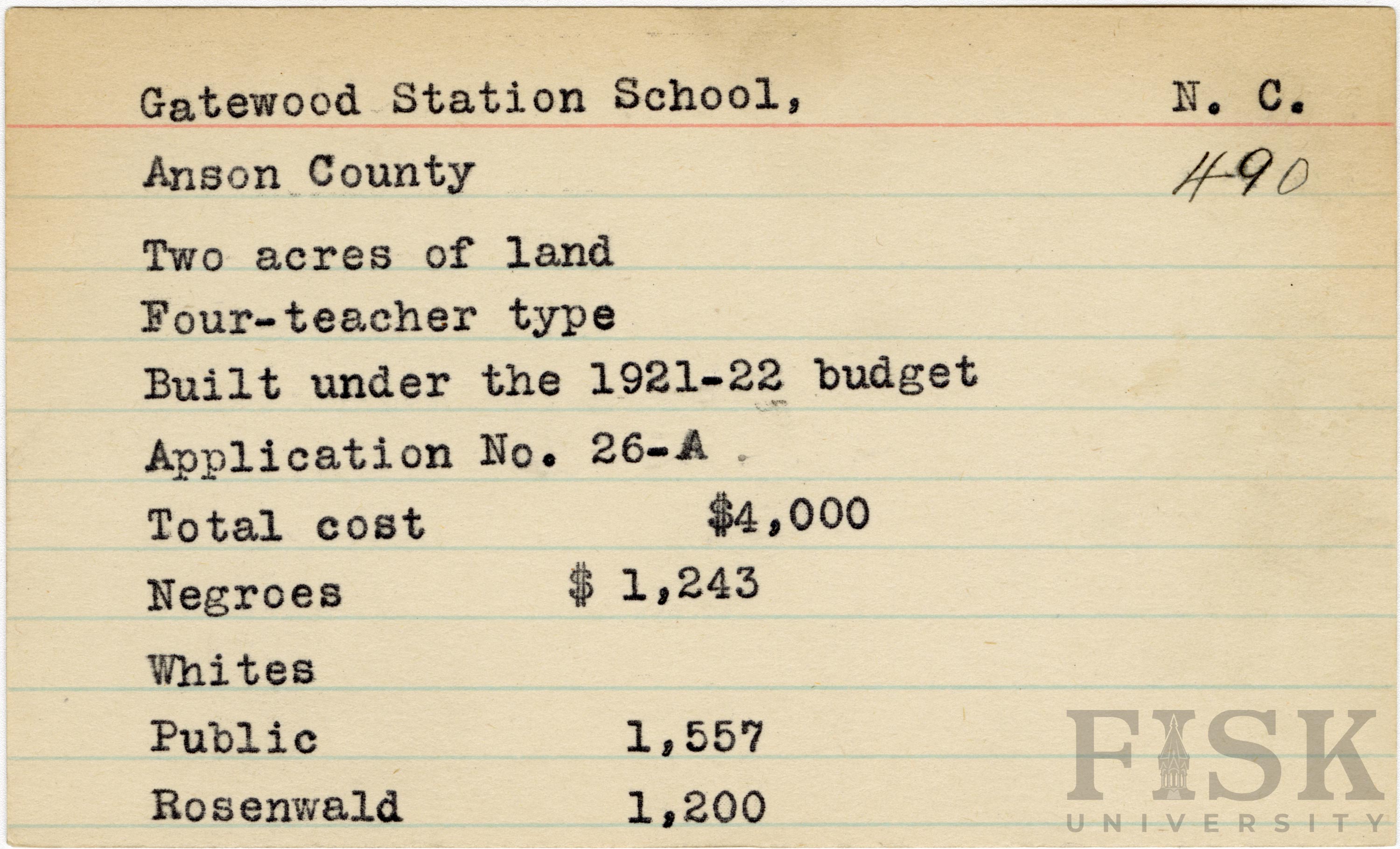 - Rosenwald Fund Card File, The Julius Rosenwald Fund Archives, 1918-1948, John Hope and Aurelia E. Franklin Library