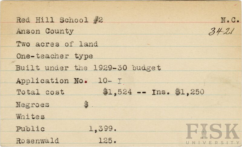 - Julius Rosenwald Fund--Buildings, African American schools--History--20th century, African American schools--Red Hill School No. 2