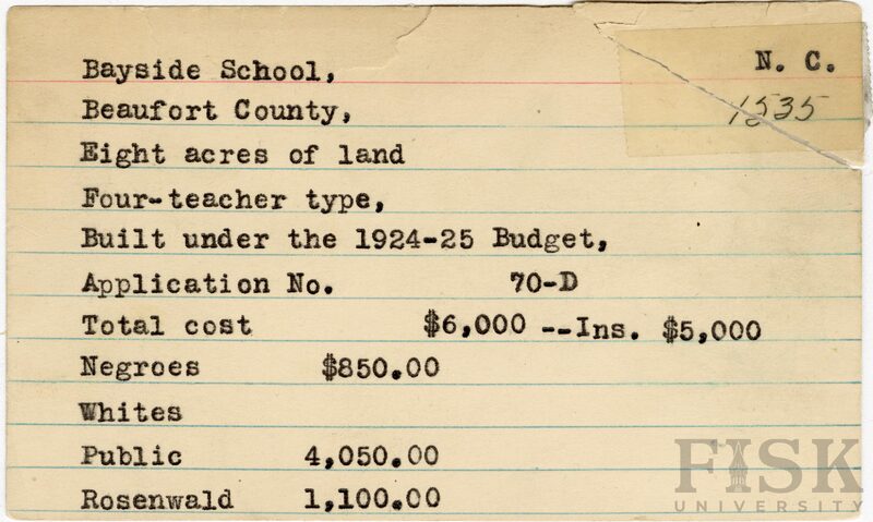 - Rosenwald Fund Card File, The Julius Rosenwald Fund Archives, 1918-1948, John Hope and Aurelia E. Franklin Library