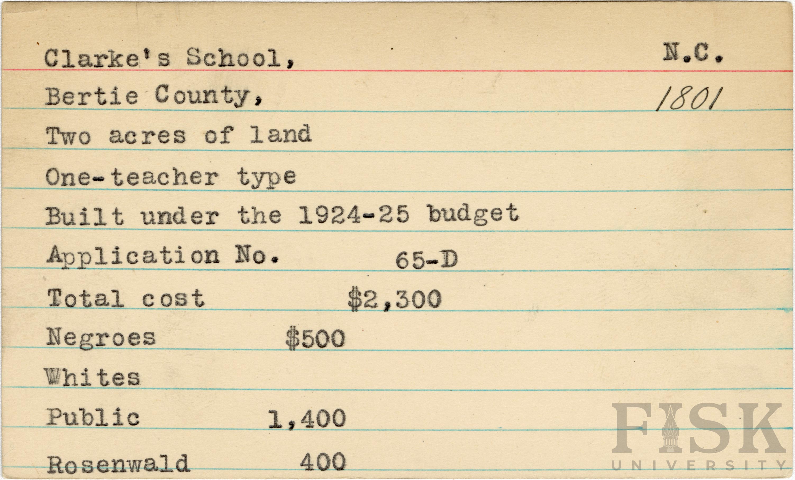- Rosenwald Fund Card File, The Julius Rosenwald Fund Archives, 1918-1948, John Hope and Aurelia E. Franklin Library