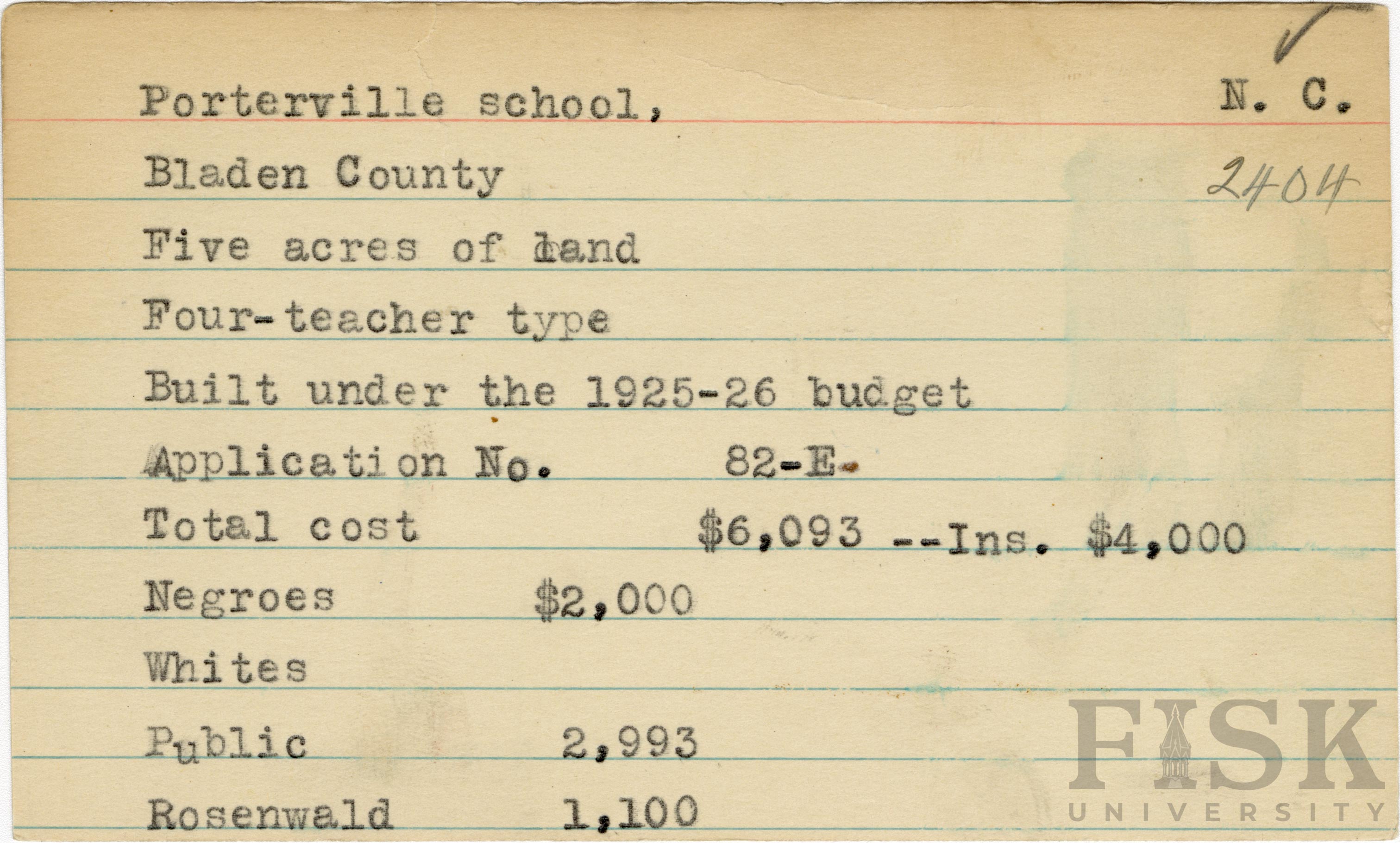 - Rosenwald Fund Card File, The Julius Rosenwald Fund Archives, 1918-1948, John Hope and Aurelia E. Franklin Library