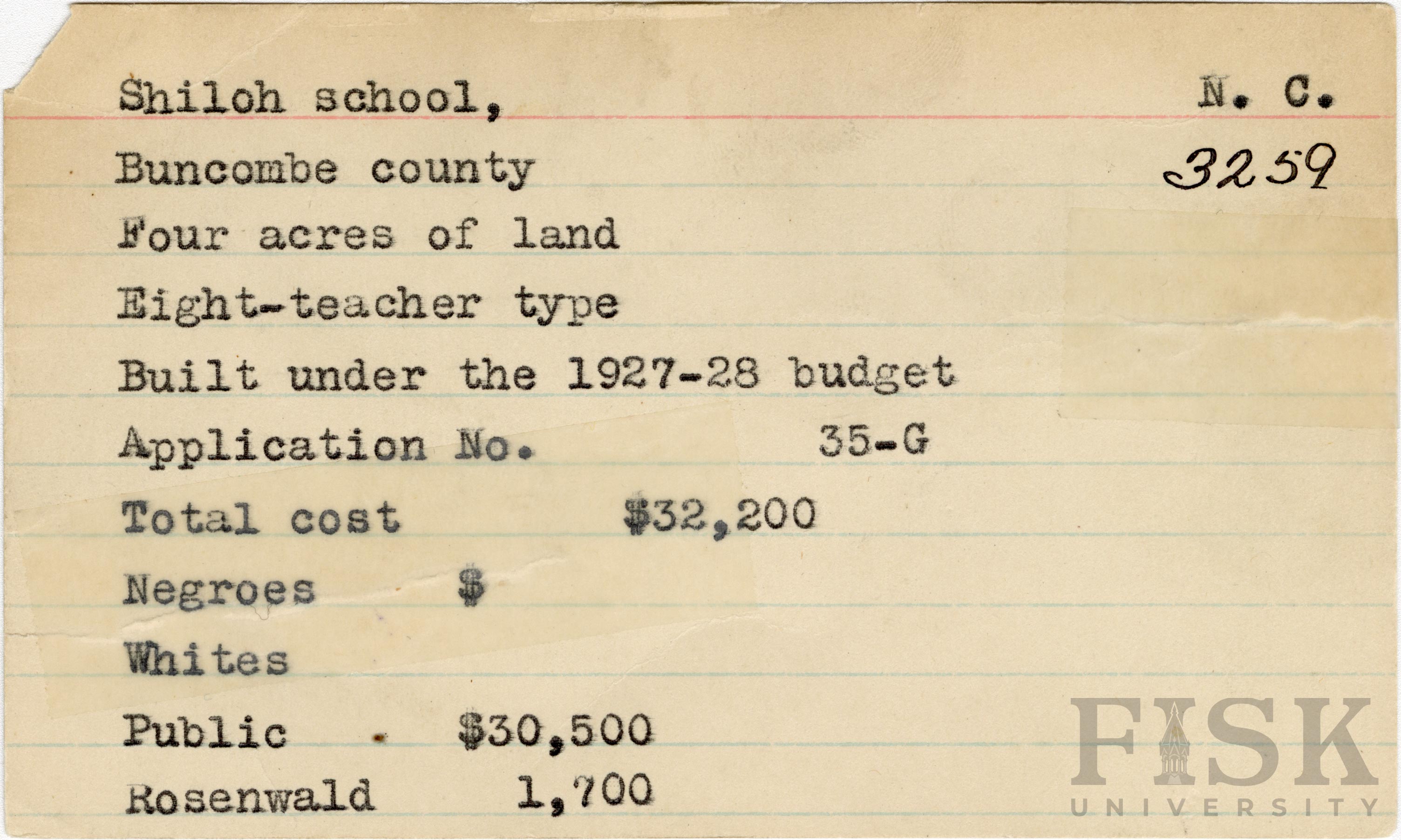 - School card for Shiloh School in Buncombe County, North Carolina