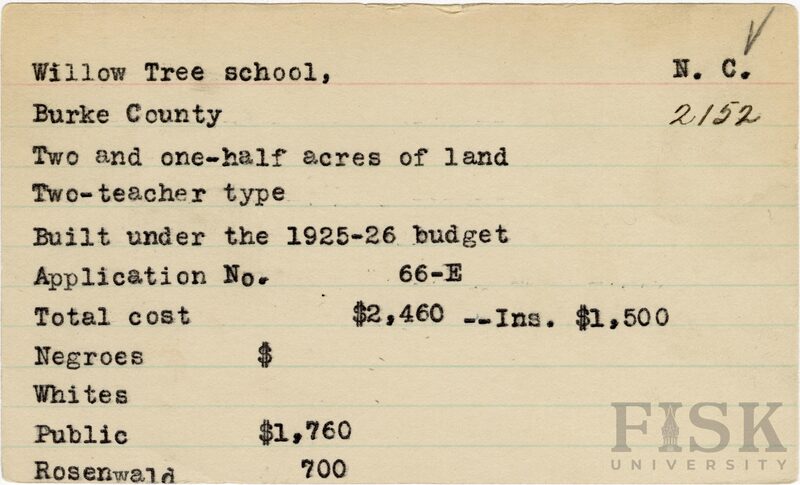 - Julius Rosenwald Fund--Buildings, African American schools--History--20th century, African American schools--Willow Tree School
