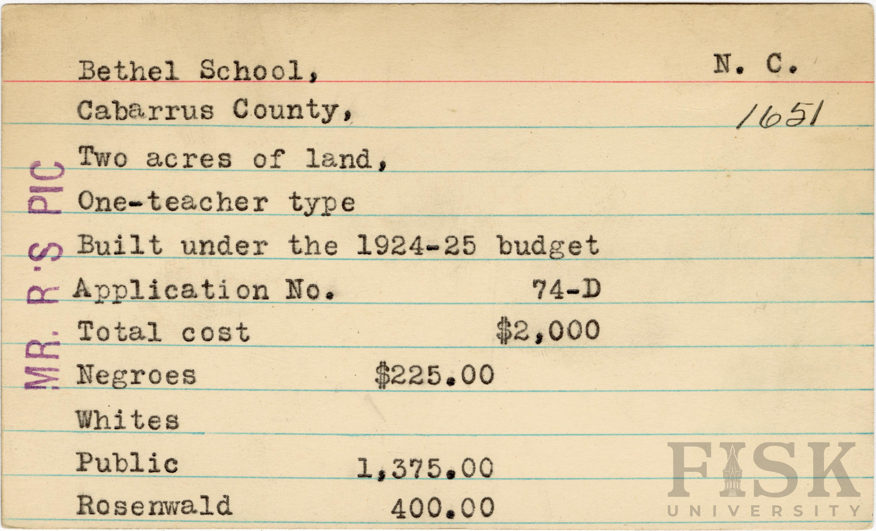 - Julius Rosenwald Fund--Buildings, African American schools--History--20th century, African American schools--Bethel School