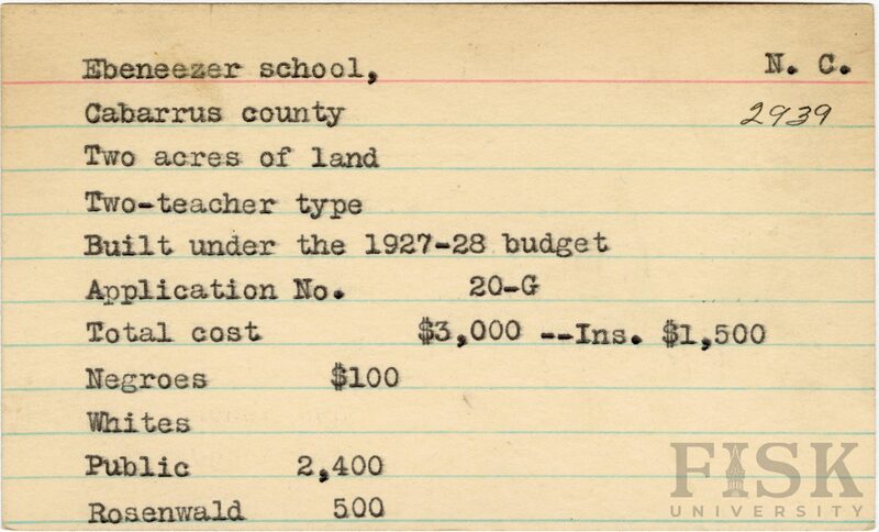 - Julius Rosenwald Fund--Buildings, African American schools--History--20th century, African American schools--Ebeneezer School