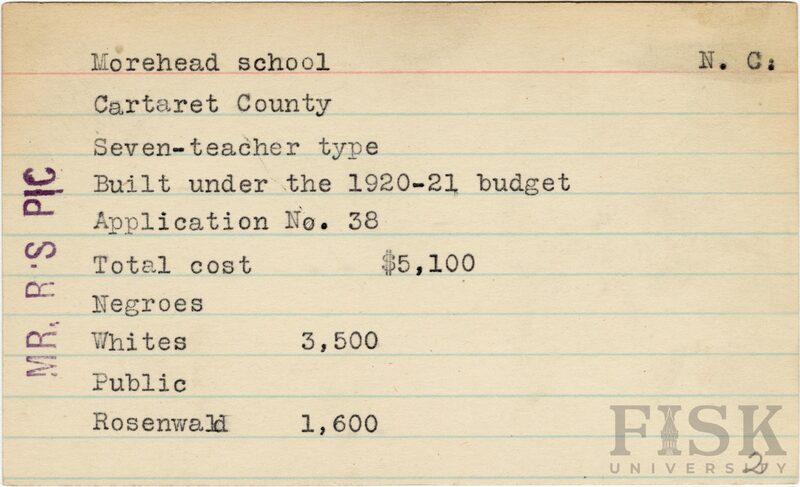- Julius Rosenwald Fund--Buildings, African American schools--History--20th century, African American schools--Morehead School