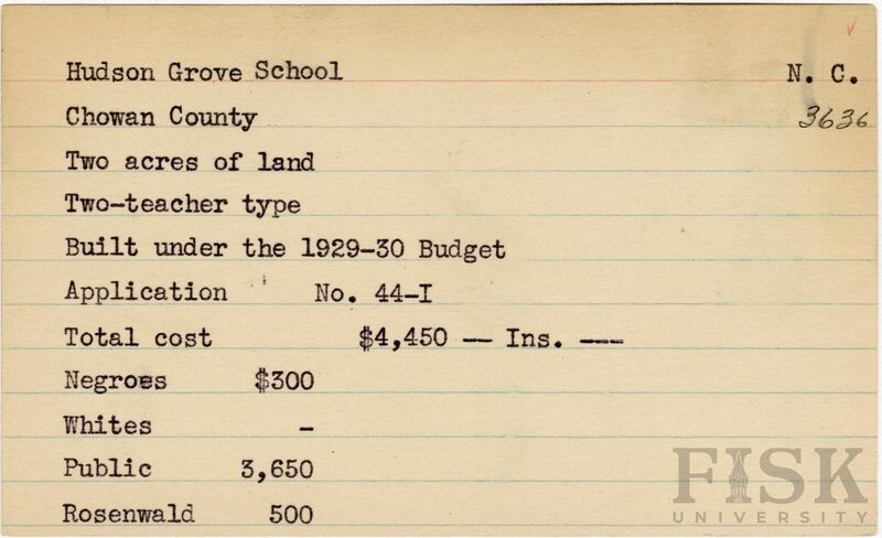 - School card for Hudson Grove School in Chowan County, North Carolina