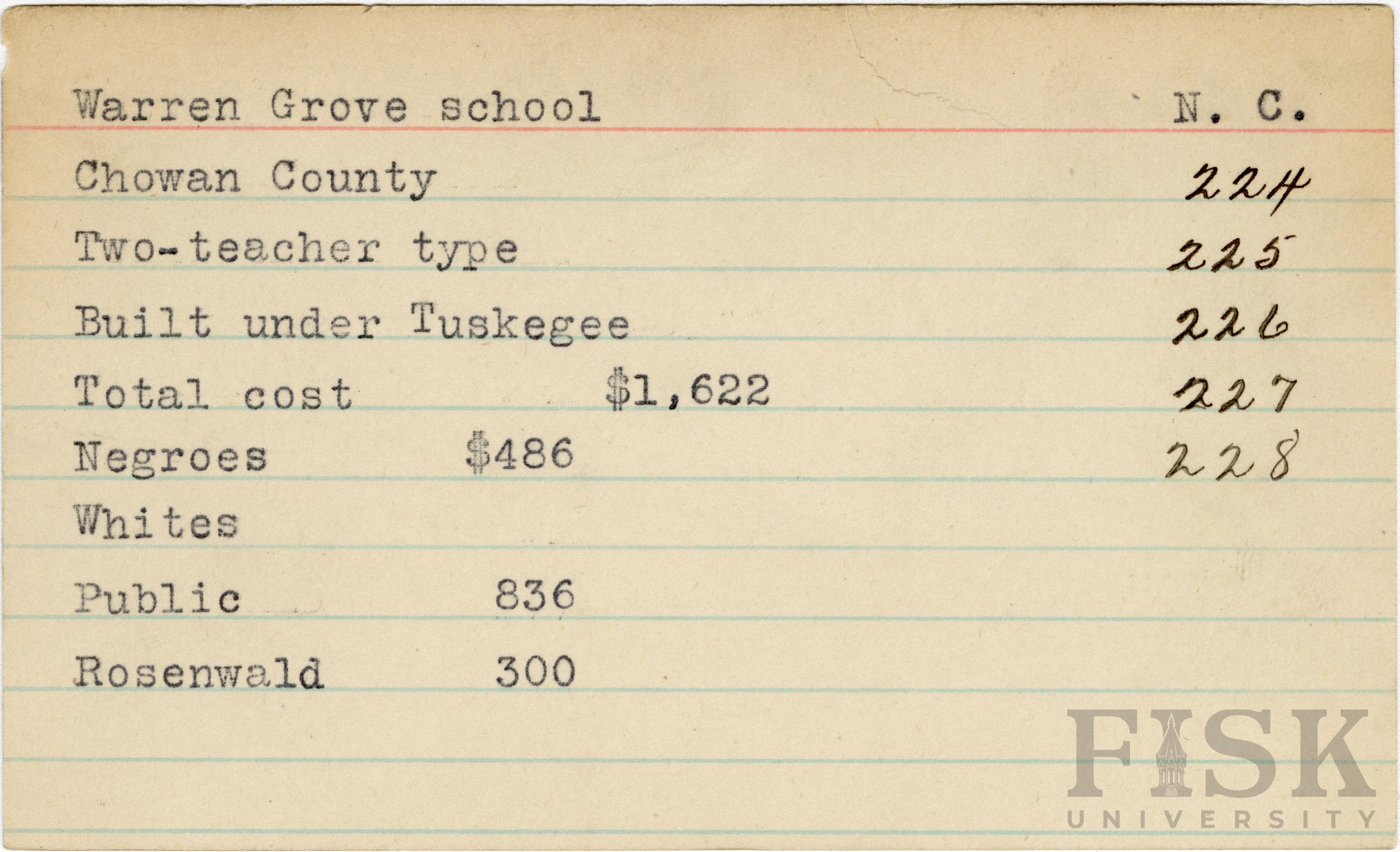 - Rosenwald Fund Card File, The Julius Rosenwald Fund Archives, 1918-1948, John Hope and Aurelia E. Franklin Library