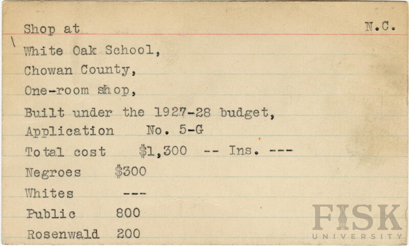 - Julius Rosenwald Fund--Buildings, African American schools--History--20th century, African American schools--White Oak School