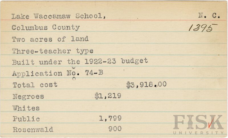 - Julius Rosenwald Fund--Buildings, African American schools--History--20th century, African American schools--Lake Waccamaw School