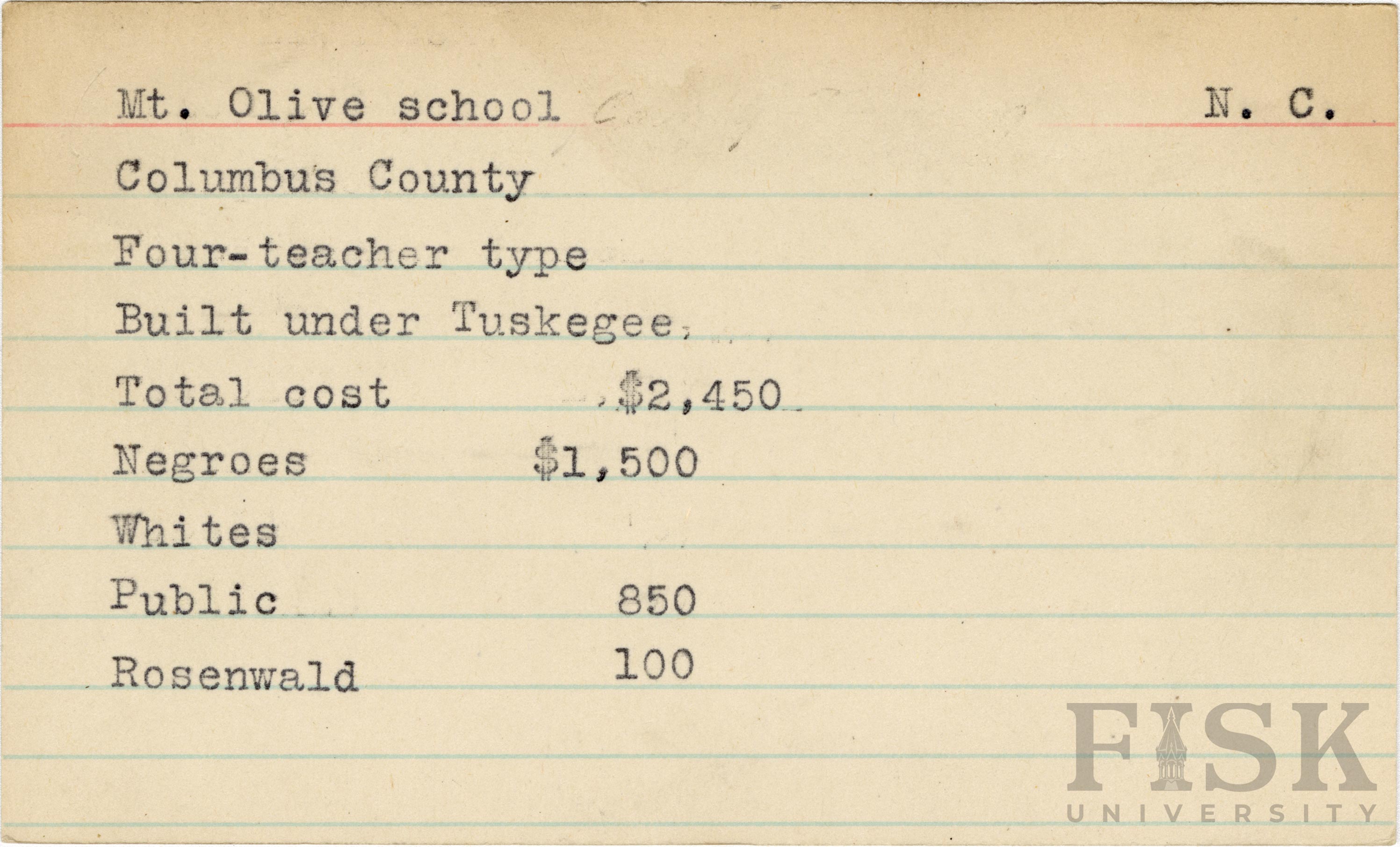 - Mt. Olive School in Columbus County, North Carolina