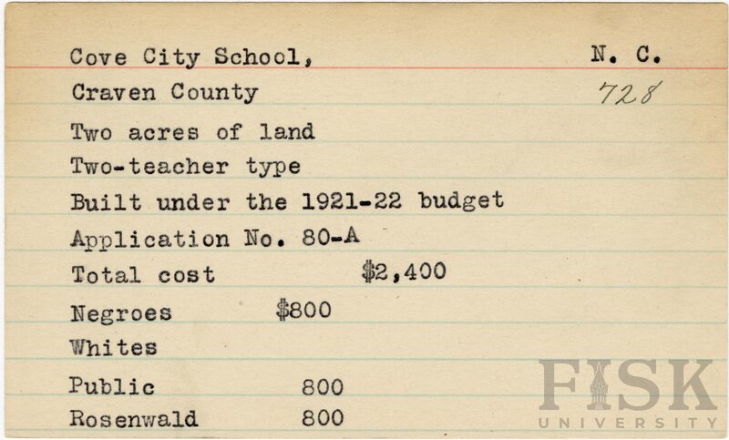 - Julius Rosenwald Fund--Buildings, African American schools--History--20th century, African American schools--Cove City School
