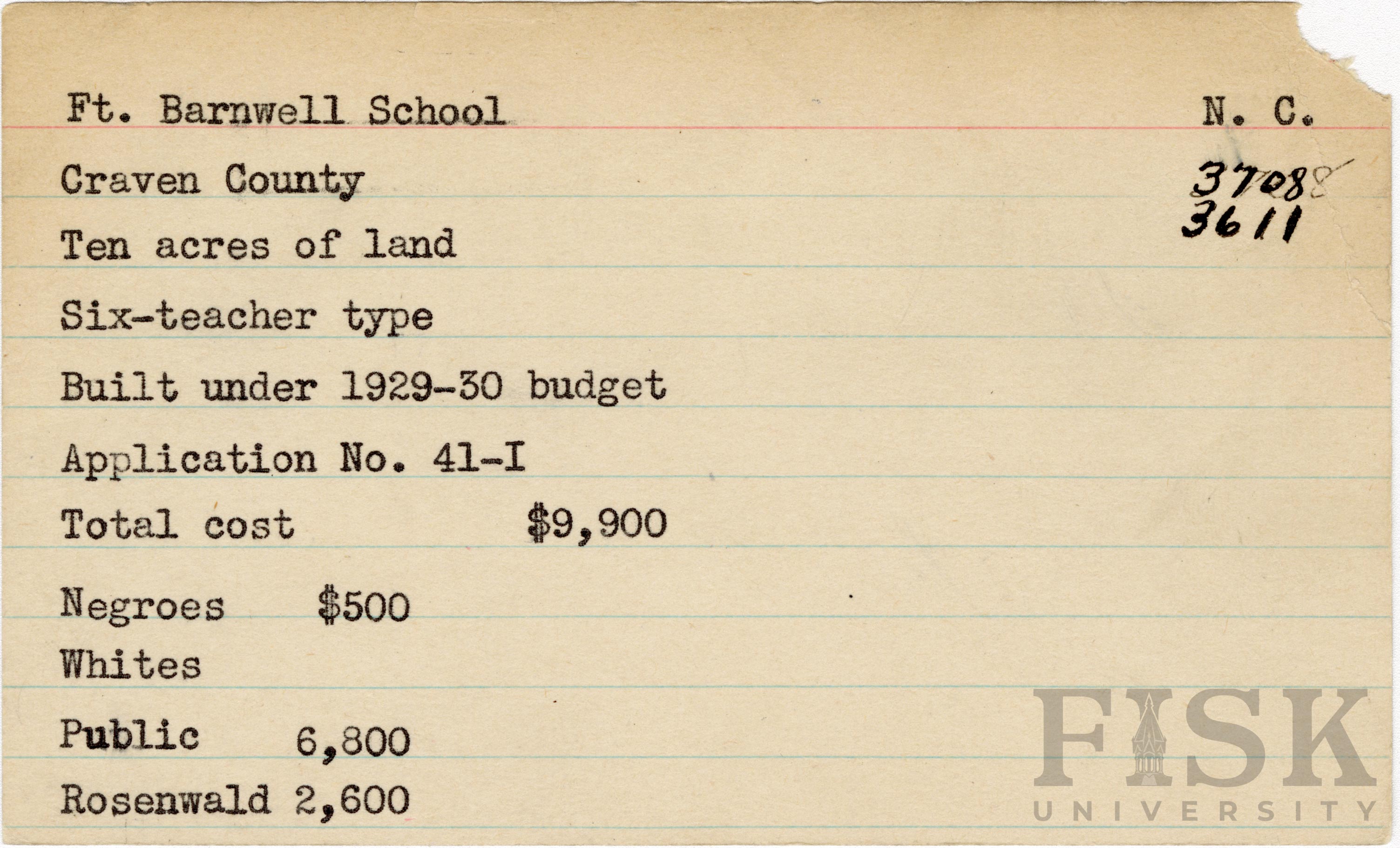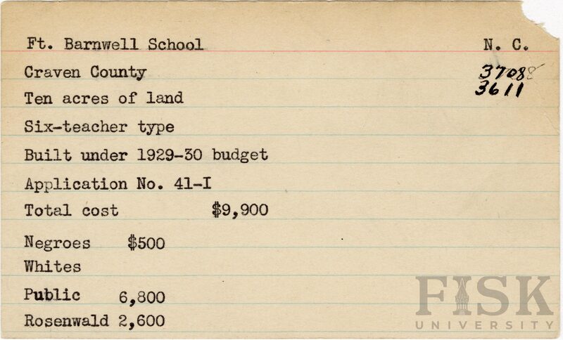 - Julius Rosenwald Fund--Buildings, African American schools--History--20th century, African American schools--Ft. Barnwell School