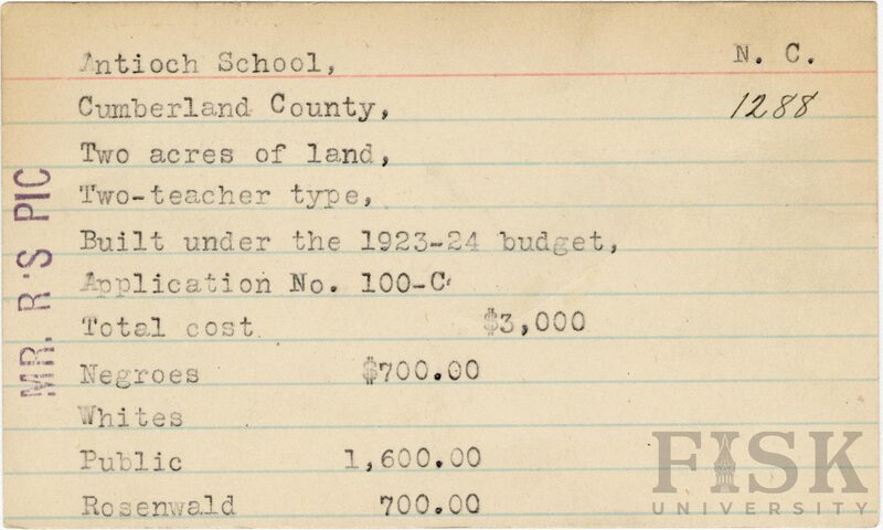 - Julius Rosenwald Fund--Buildings, African American schools--History--20th century, African American schools--Antioch School
