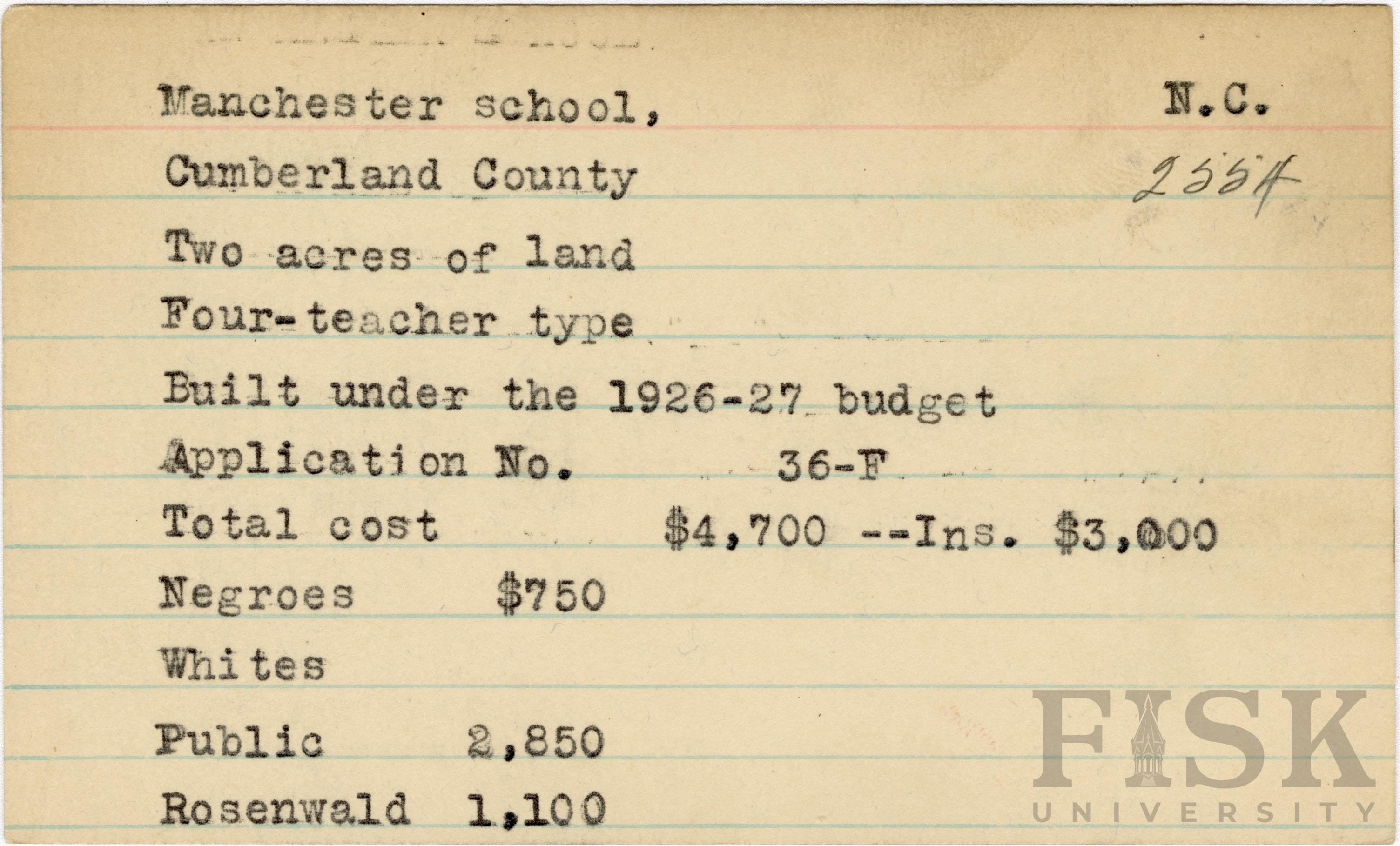 - Rosenwald Fund Card File, The Julius Rosenwald Fund Archives, 1918-1948, John Hope and Aurelia E. Franklin Library