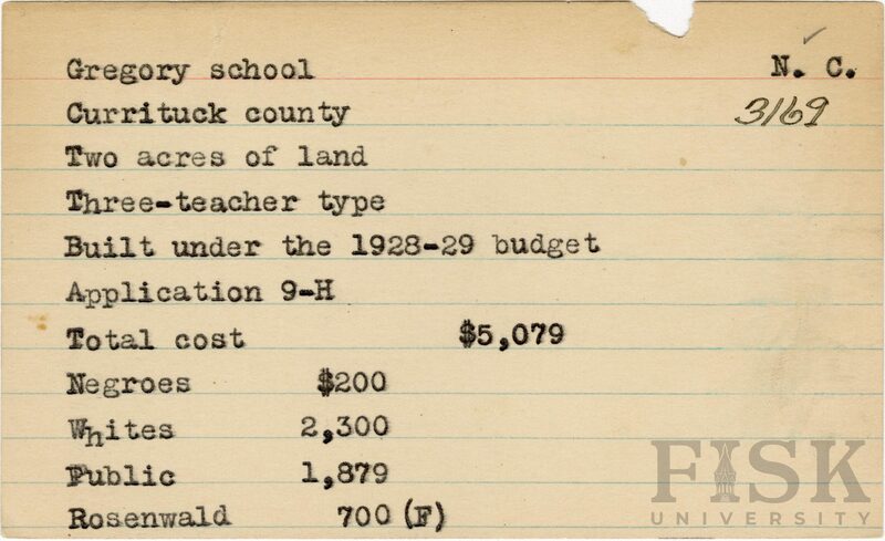 - School card for Gregory School in Currituck County, North Carolina