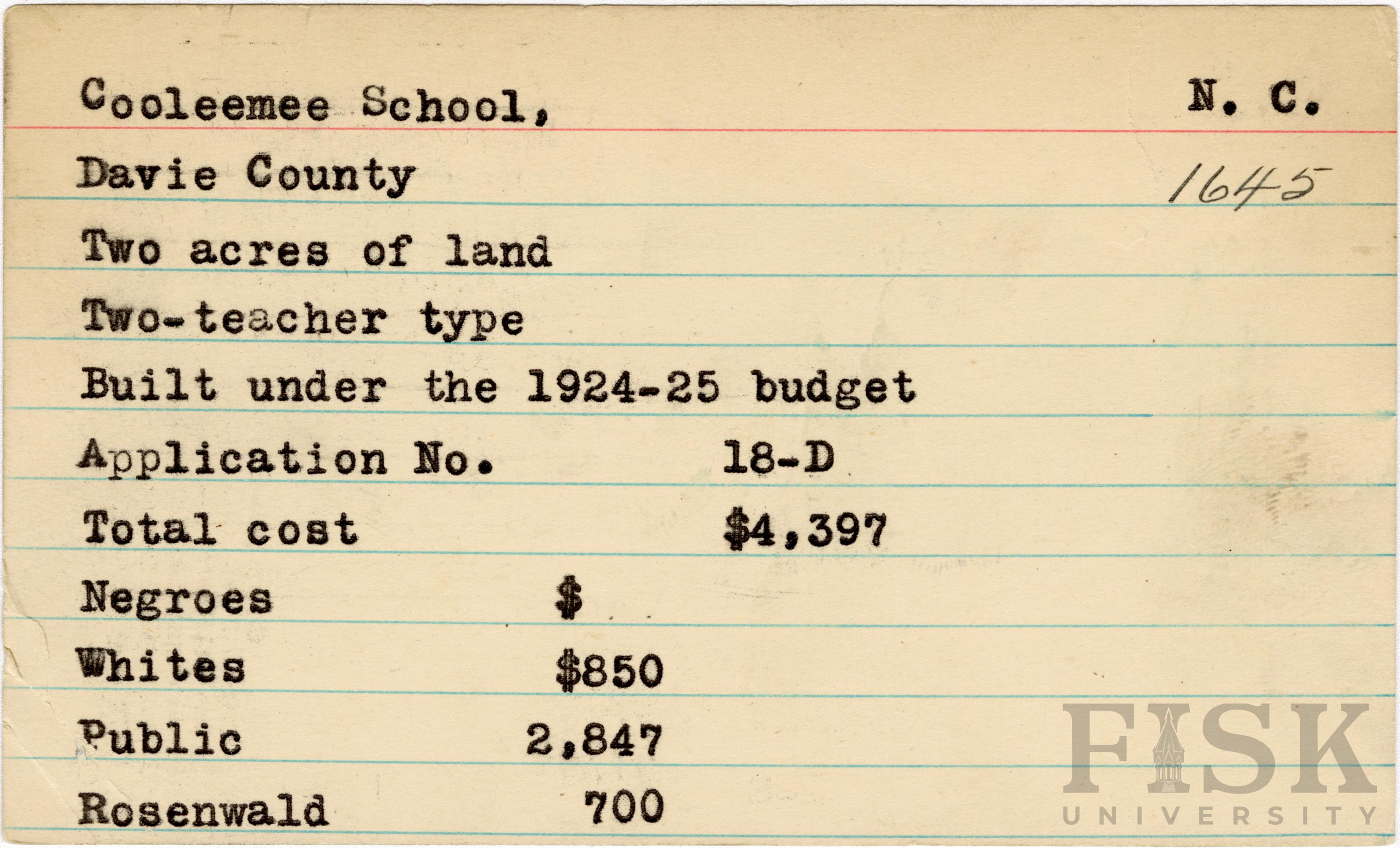 - Rosenwald Fund Card File, The Julius Rosenwald Fund Archives, 1918-1948, John Hope and Aurelia E. Franklin Library