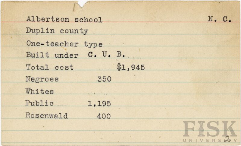 - Rosenwald Fund Card File, The Julius Rosenwald Fund Archives, 1918-1948, John Hope and Aurelia E. Franklin Library