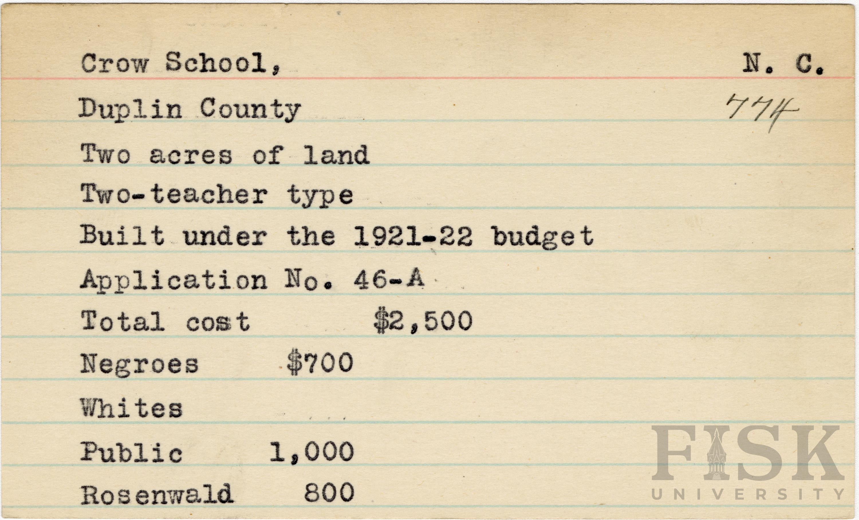 - Rosenwald Fund Card File, The Julius Rosenwald Fund Archives, 1918-1948, John Hope and Aurelia E. Franklin Library