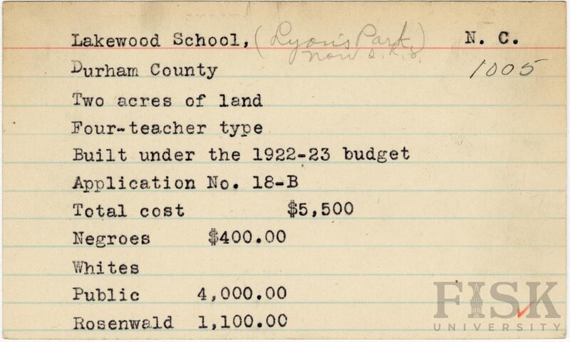 - Rosenwald Fund Card File, The Julius Rosenwald Fund Archives, 1918-1948, John Hope and Aurelia E. Franklin Library