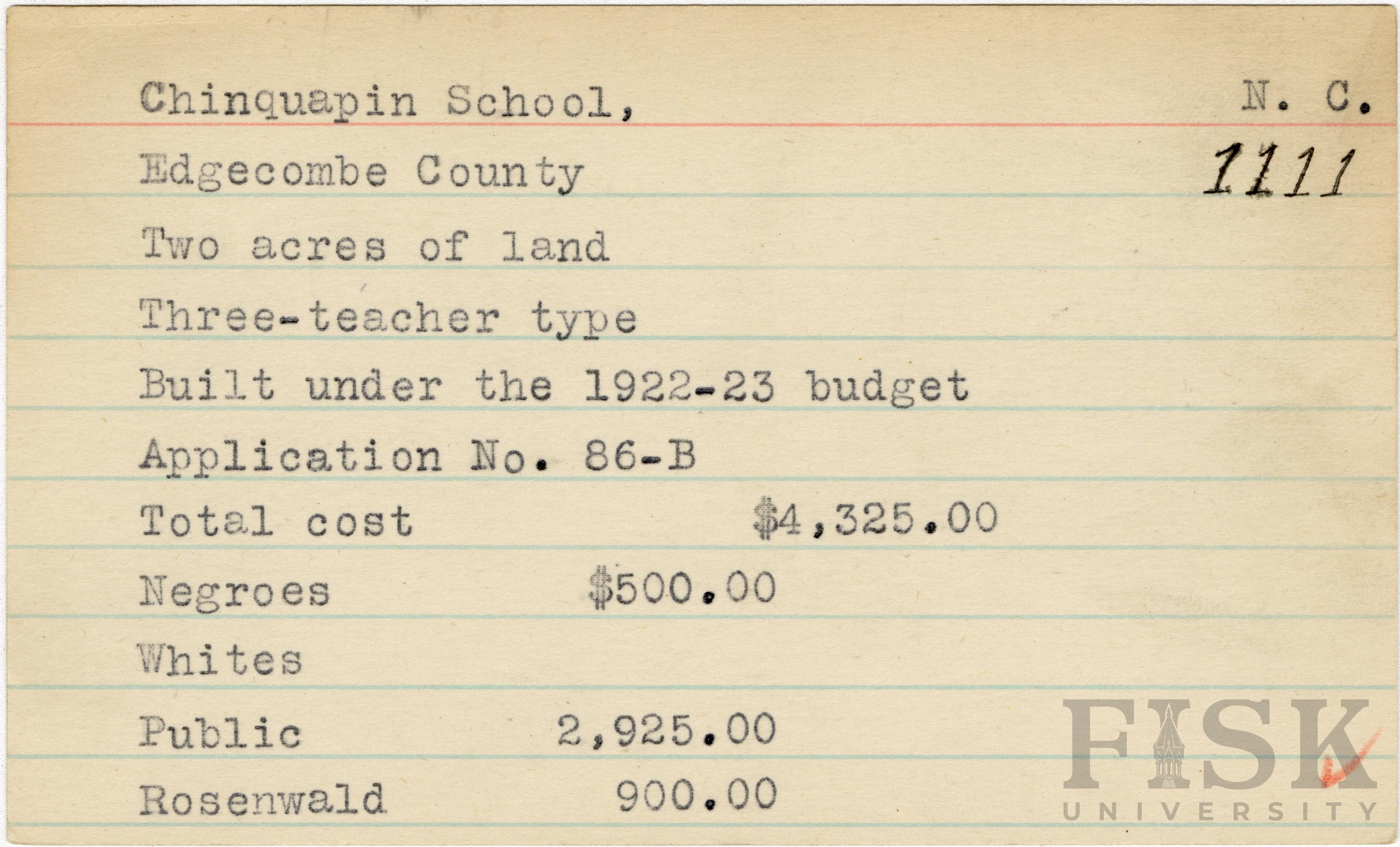 - Rosenwald Fund Card File, The Julius Rosenwald Fund Archives, 1918-1948, John Hope and Aurelia E. Franklin Library