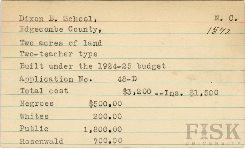 - Rosenwald Fund Card File, The Julius Rosenwald Fund Archives, 1918-1948, John Hope and Aurelia E. Franklin Library