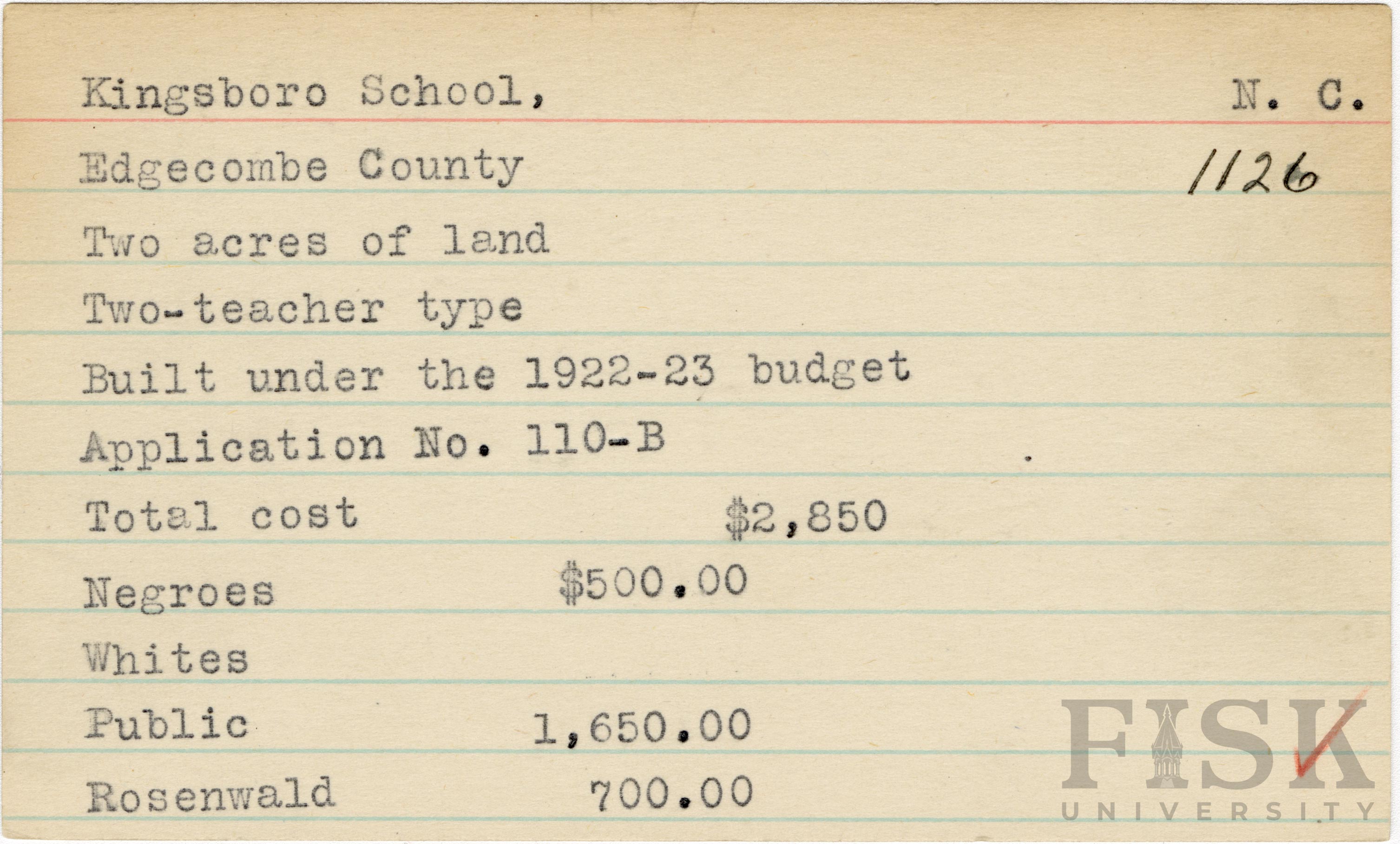 - Julius Rosenwald Fund--Buildings, African American schools--History--20th century, African American schools--Kingsboro School