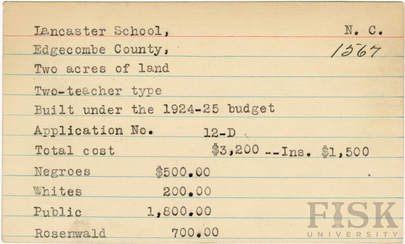 - Rosenwald Fund Card File, The Julius Rosenwald Fund Archives, 1918-1948, John Hope and Aurelia E. Franklin Library