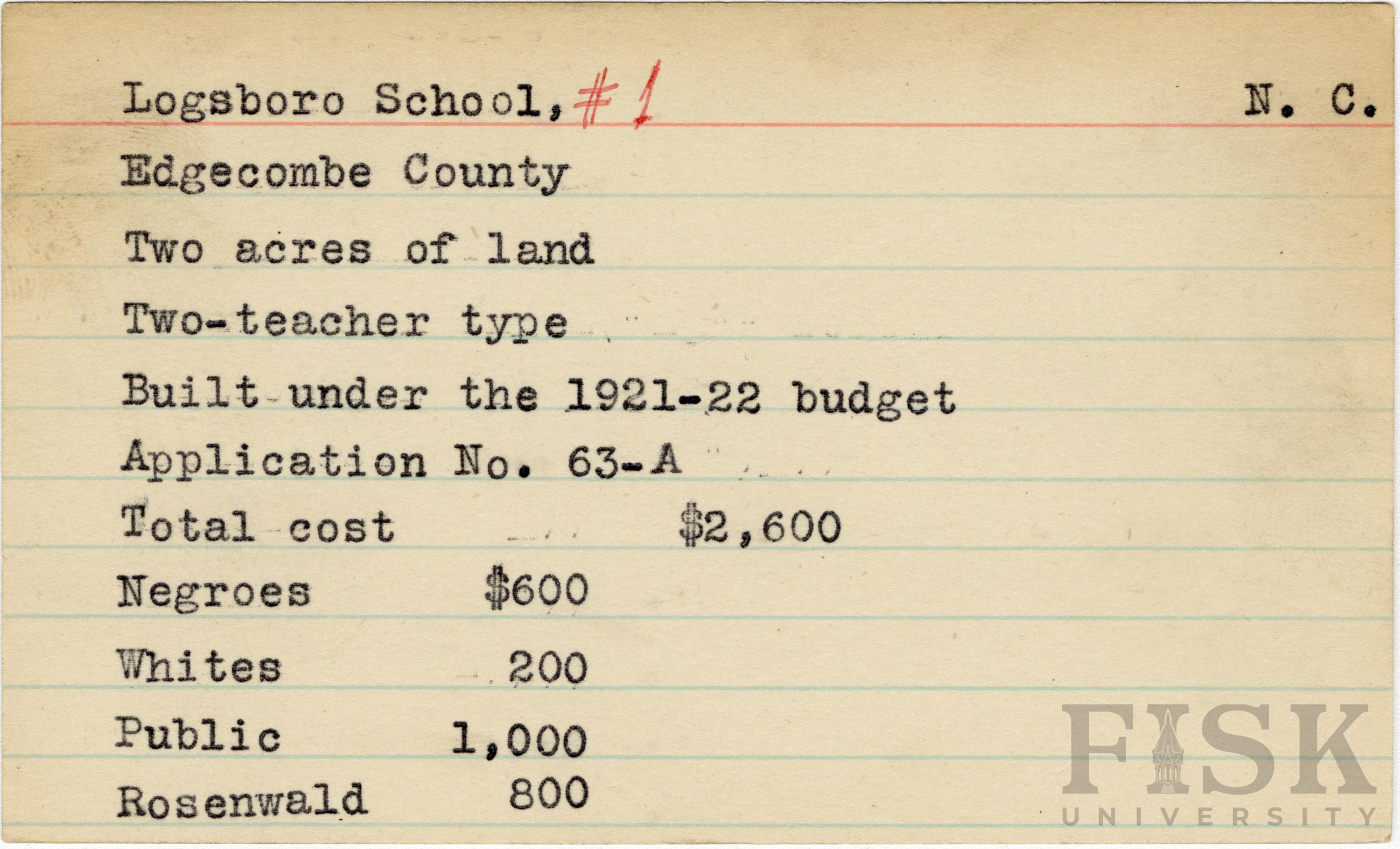 - Rosenwald Fund Card File, The Julius Rosenwald Fund Archives, 1918-1948, John Hope and Aurelia E. Franklin Library