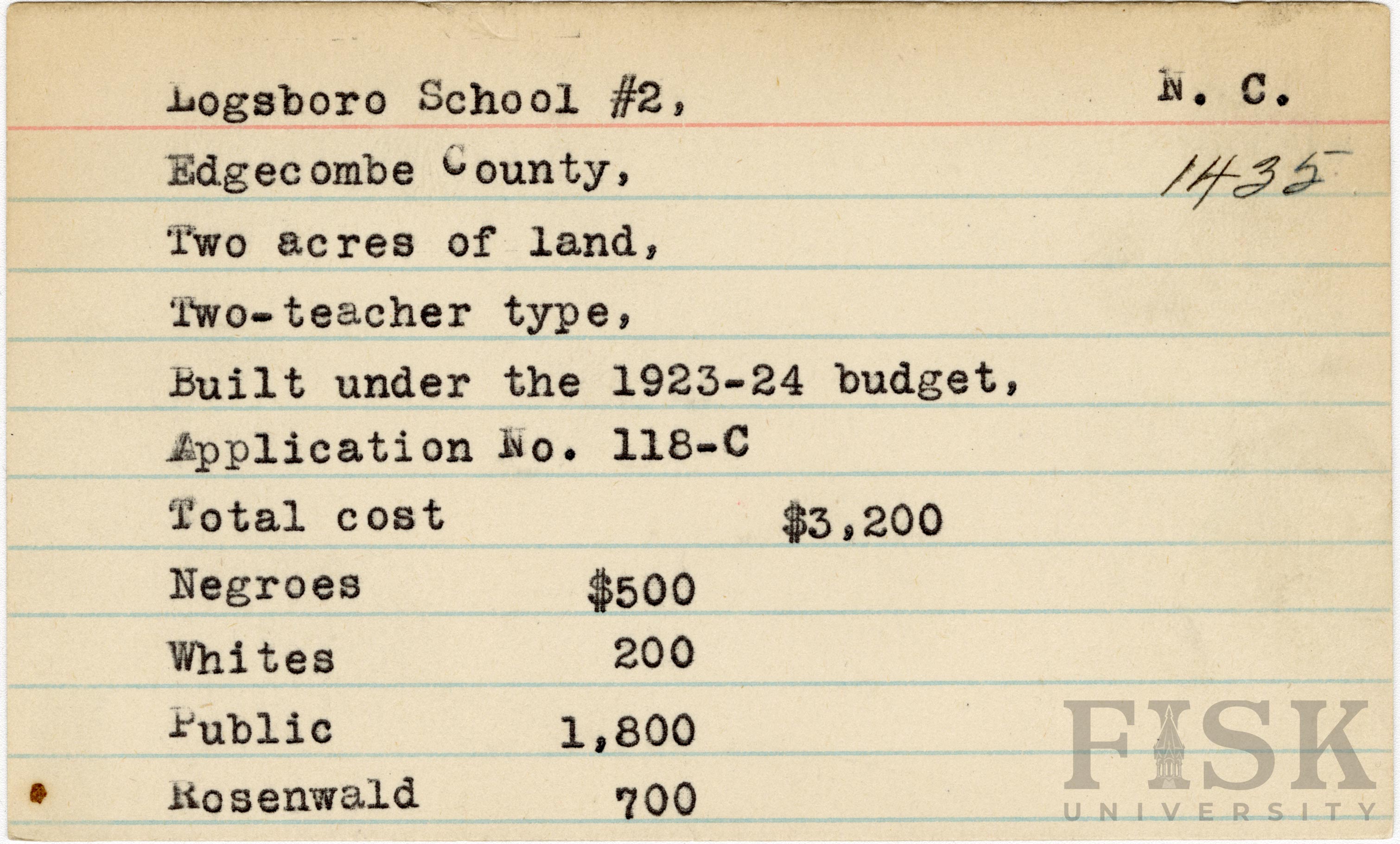 - Rosenwald Fund Card File, The Julius Rosenwald Fund Archives, 1918-1948, John Hope and Aurelia E. Franklin Library