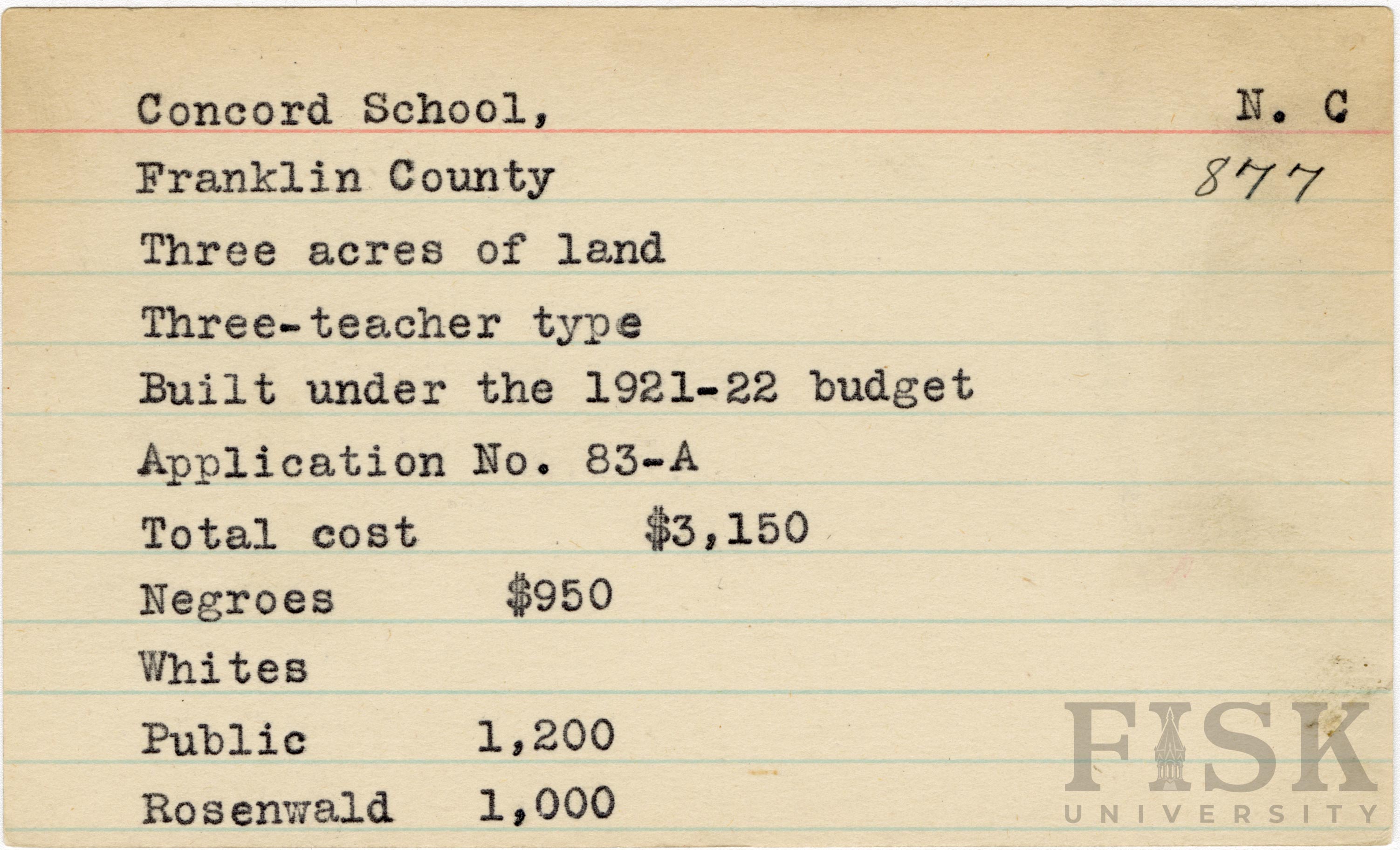 School card for Concord School in Franklin County, North Carolina